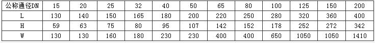 法蘭浮動球閥PN2.5MPa主要連接尺寸