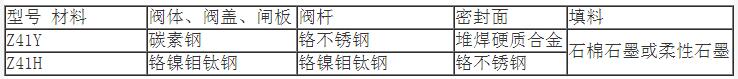 Z41H型與Z41Y型耐高溫鋼法蘭閘閥零部件材料比對: